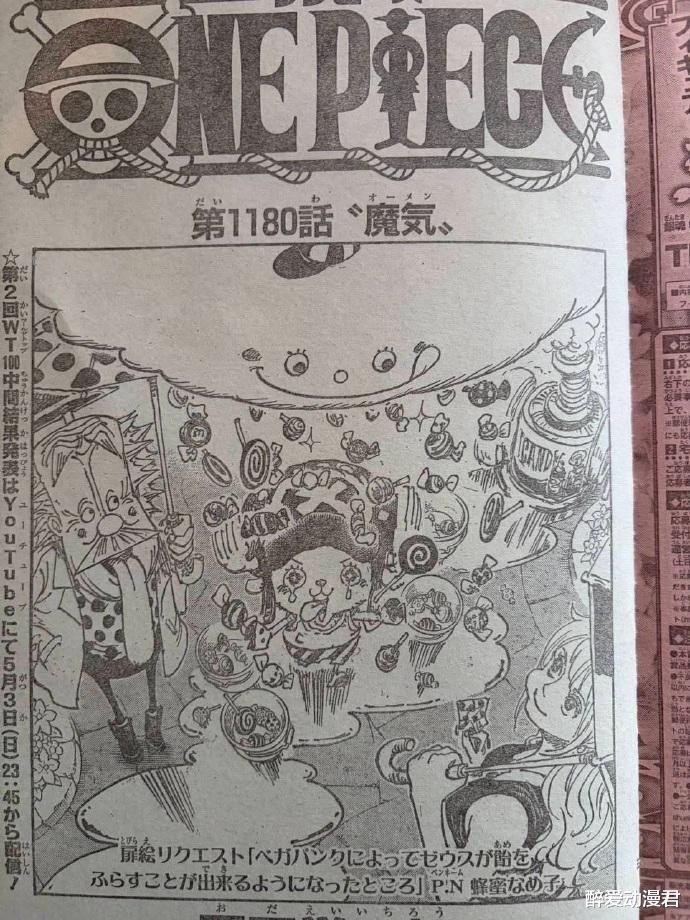 我们知道本周更新了海贼王最新一期的漫画1180话,目前漫画已经更新,本话标题为“魔气”。扉页之中,是宙斯被贝加庞克改造的可以下糖果雨,乔巴兴奋的不行!